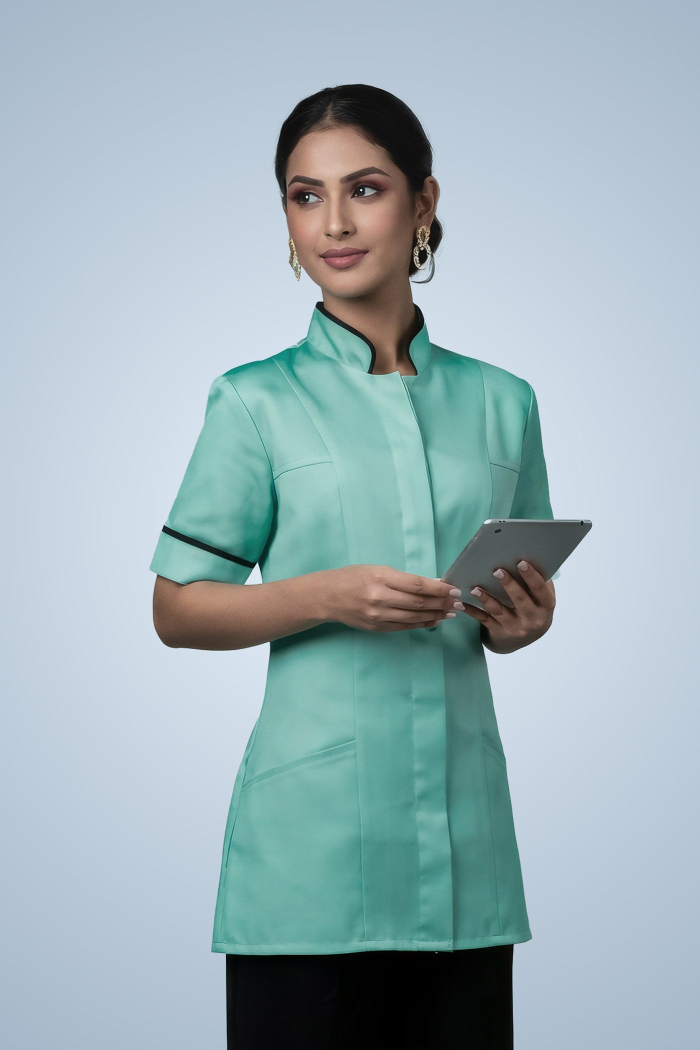 Inform when this item available Brockley Mandarin Tunic - Aqua & Navy Blue