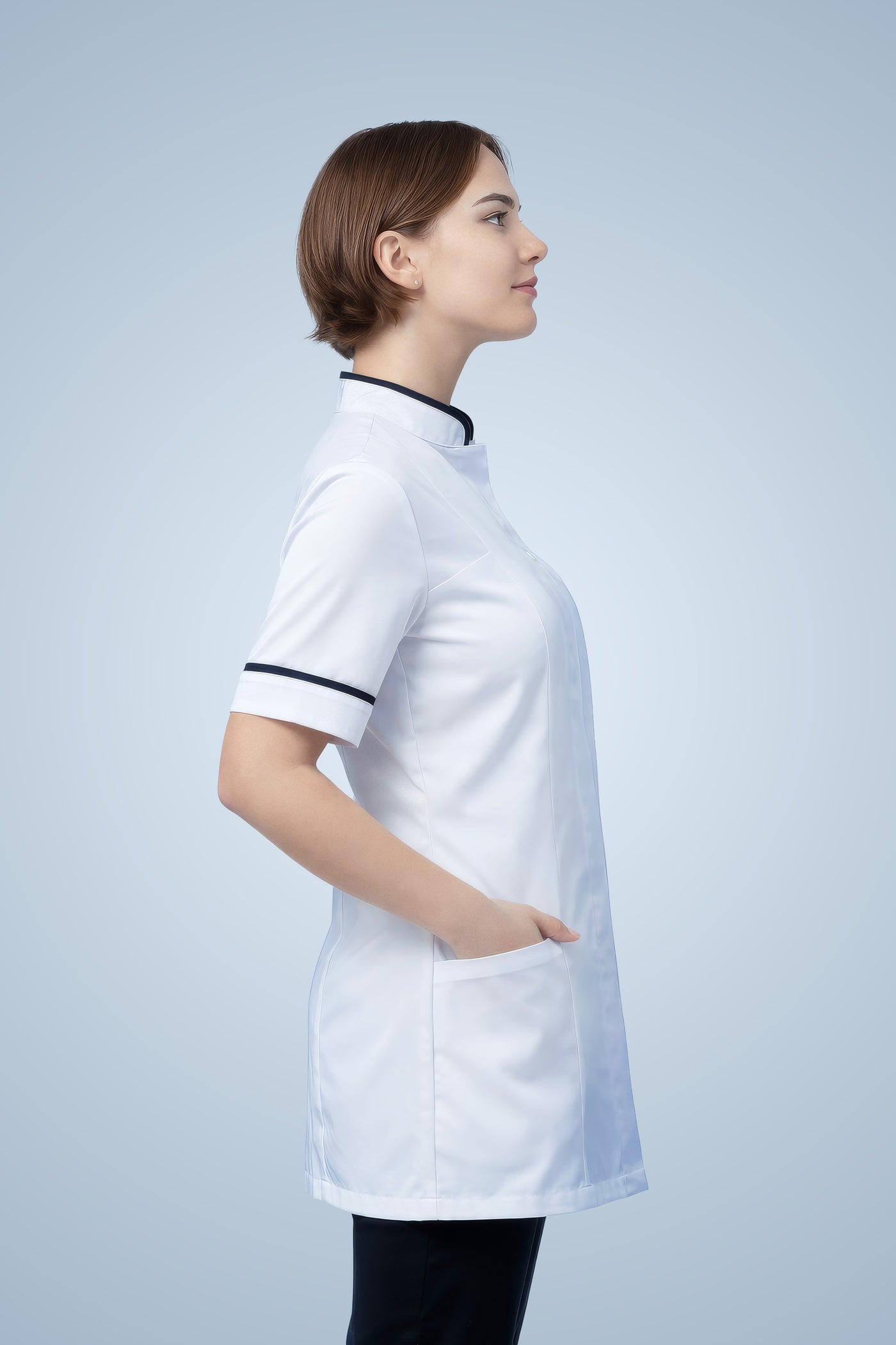Inform when this item available Brockley Mandarin Tunic - White & Navy Blue